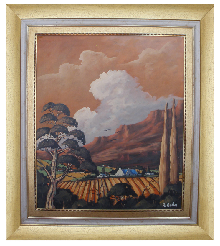He spent most of his childhood in the Orange Free State region where his father was a teacher at different schools. He matriculated at Menlo Park High school in Pretoria, after which he studied Drama at Potchefstroom. At Botha is well known for numerous projects in the performing arts, but he loved painting since he was a child. He works in various mediums and paints landscapes, harvester scenes of the Cape, District six scenes, seascapes and clowns. His landscapes are especially inspired by the Eastern Free State. His work also reflects his great love for the people and various regions of the Cape. At Botha’s personality is showcased in his work, vibrant, rich, colors.
